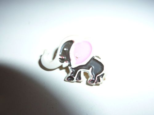 Brosche schwarz mit rosa Ohr, Rüssel: oben, Stoßzähne: ja