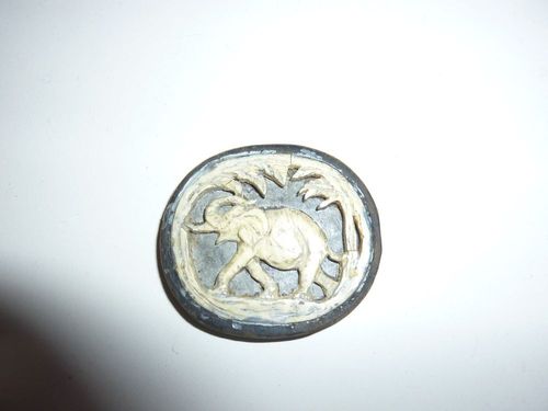 Brosche elfenbein auf ebenholz, Rüssel: oben, Stoßzähne: ja