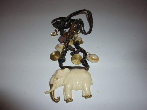 Kette mit Muscheln, Rüssel: unten, Stoßzähne: ja