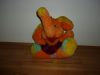 orange bunt sitzt, Rüssel: oben, Stoßzähne: nein