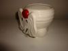 Blumenübertopf weiß mit roter Mütze, Rüssel: unten, Stoßzähne: ja