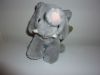 grau sitzt mit Plakete im Ohr, Rüssel: oben, Stoßzähne: ja