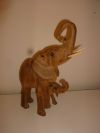 hellbraun Mutter und Kind, Rüssel: oben, Stoßzähne: ja