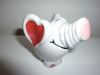 grau mit roten Herzohren, Rüssel: oben, Stoßzähne: nein