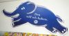 Aufkleber blau "Den will ich haben", Rüssel: oben, Stoßzähne: ja