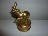 gold steht auf Dose hebt Vorderbein, Rüssel: oben, Stoßzähne: ja