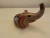 grau beige braun lächelt, Rüssel: oben, Stoßzähne: ja