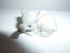 hellgrau mit rosa Ohren liegend, Rüssel: oben, Stoßzähne: nein
