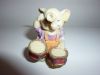 grau bunt mit zwei Trommeln, Rüssel: oben, Stoßzähne: nein