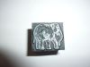 Stempel schwarz auf dunkelbraunem Holz, Rüssel: unten, Stoßzähne: ja