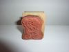 Stempel rot auf hellbraunem Holz, Rüssel: oben, Stoßzähne: nein