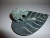 Räucherstäbchenhalter grün auf Blatt, Rüssel: oben, Stoßzähne: nein