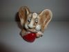 hellbraun mit rotem Herz, Rüssel: oben, Stoßzähne: nein