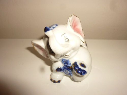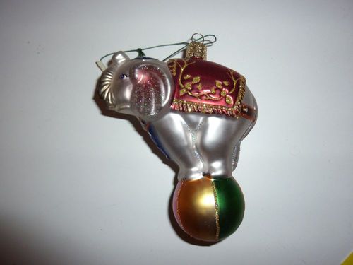 Weihnachtskugel bunt Elefant auf Ball, Rüssel: oben, Stoßzähne: ja