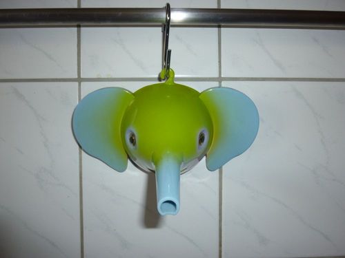 hellblau orange Plastikohren Ikea, Rüssel: oben, Stoßzähne: nein