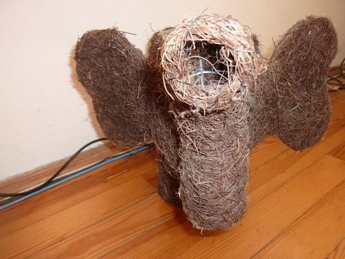 Blumentopfhalter braun steht, Rüssel: oben, Stoßzähne: nein