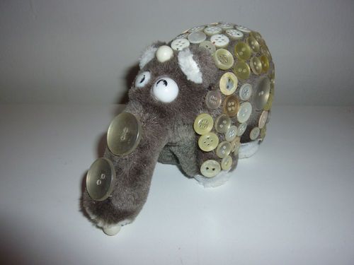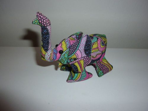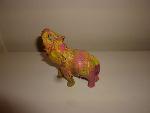 ganz bunt mit Sand gefüllt, Rüssel: oben, Stoßzähne: nein