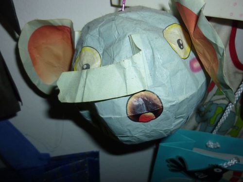 Kugel hellblau Papier, Rüssel: oben, Stoßzähne: nein