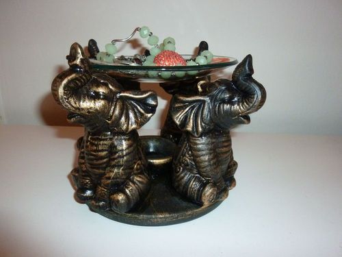 Duftlampe bronzefarben mit Glasschale, Rüssel: oben, Stoßzähne: nein
