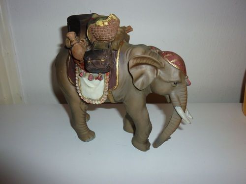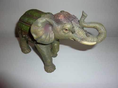 grau Rüssel oben goldnes Kappi grün-rote Decke, Rüssel: oben, Stoßzähne: ja