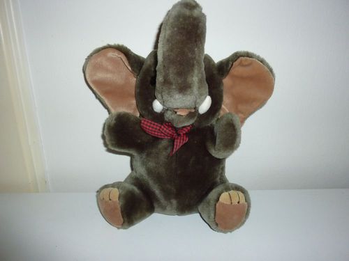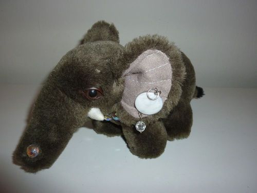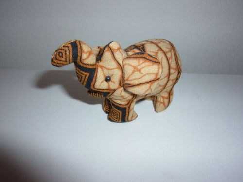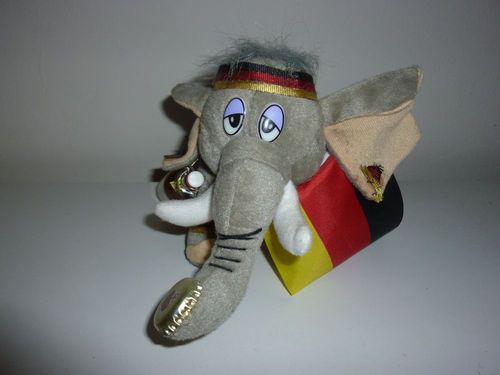 hellbraun gemustert mit Sand gefüllt, Rüssel: oben, Stoßzähne: nein