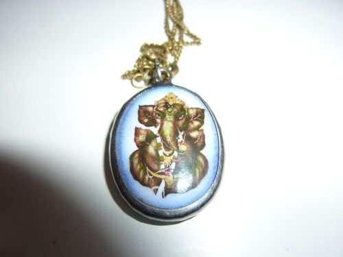 Anhänger an Kette mit Bild von Ganesha, Rüssel: unten, Stoßzähne: ja