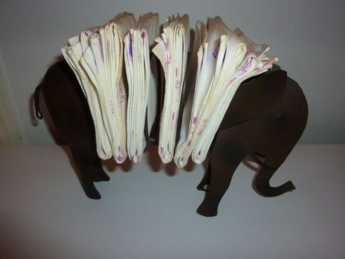Papiertüte hellblau, Rüssel: oben, Stoßzähne: ja