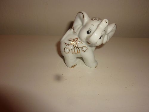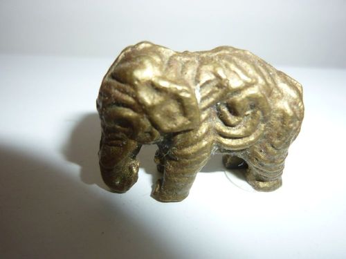 gold mit runden Ohren Rüssel oben, Rüssel: oben, Stoßzähne: ja