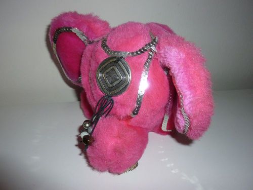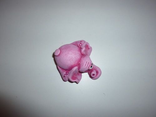 9 rosa lila weiß gepunktete Ohren, Rüssel: oben, Stoßzähne: ja