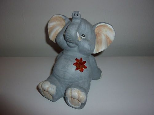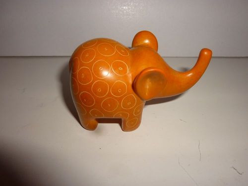 Sparbüchse gelb orange Körper wie Kuh, Rüssel: oben, Stoßzähne: ja