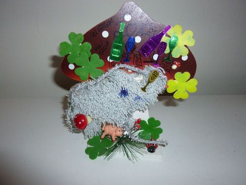 bunt mit Kerze drin, Rüssel: oben, Stoßzähne: nein