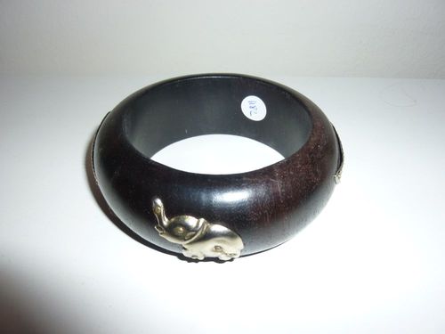 Armreif schwarz mit silbernen Elefanten, Rüssel: oben, Stoßzähne: ja