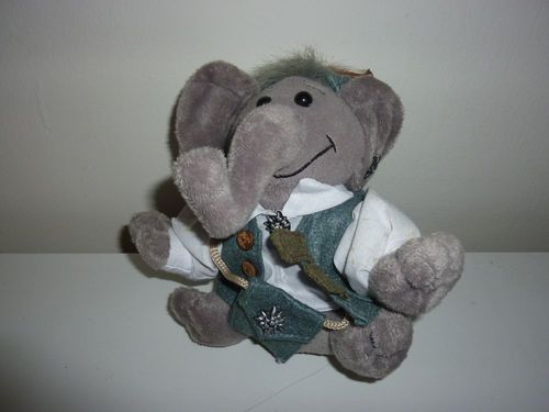 grau mit grüner Weste und Hut (Bayer), Rüssel: oben, Stoßzähne: nein