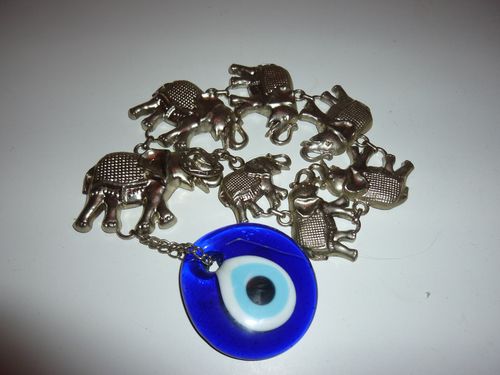 silber mit blauem Auge gegen den bösen Blick, Rüssel: oben, Stoßzähne: ja