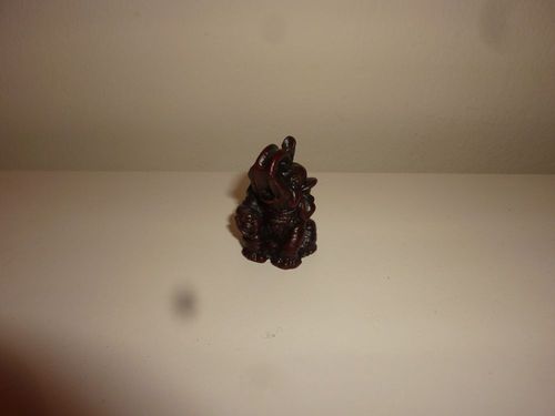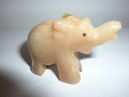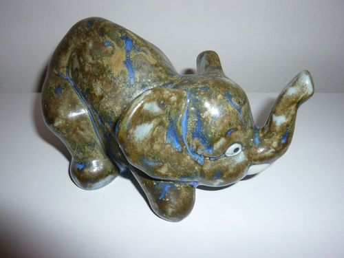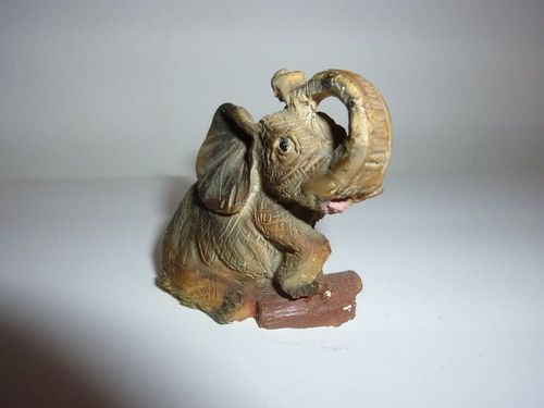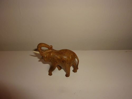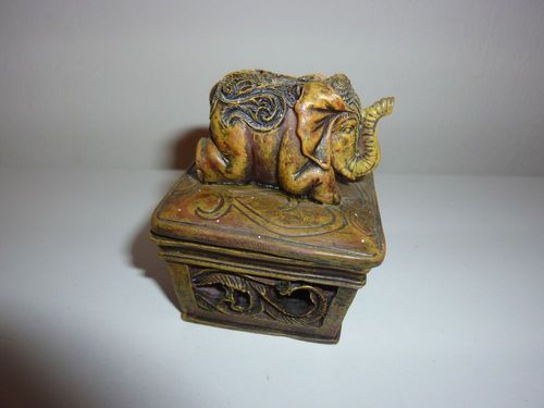 Döschen braun Elefant liegt oben, Rüssel: oben, Stoßzähne: ja