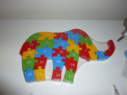 Puzzle bunt in Plastik eingeschweißt, Rüssel: oben, Stoßzähne: nein