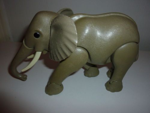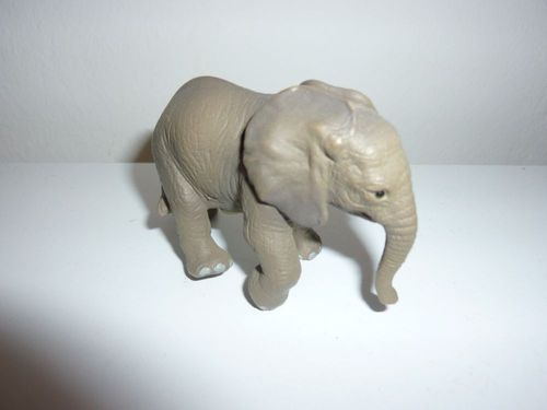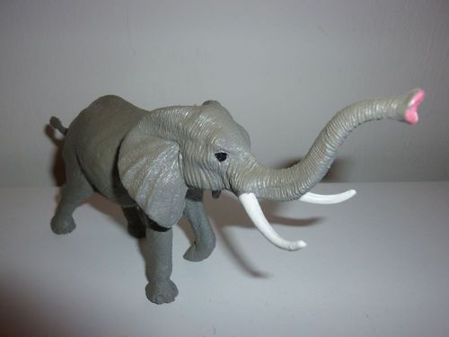 grau Plastik Rüssel und Schwanz weggestreckt, Rüssel: oben, Stoßzähne: ja