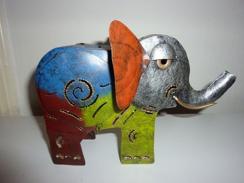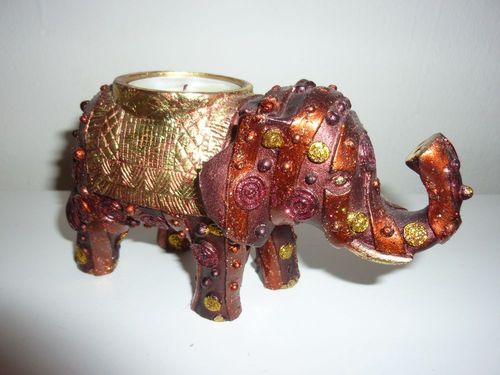 Teelichthalter bunt, Rüssel: oben, Stoßzähne: ja