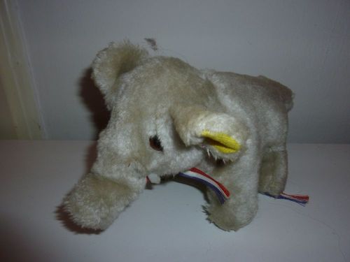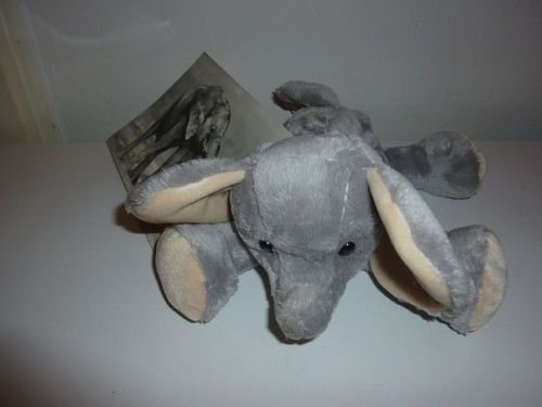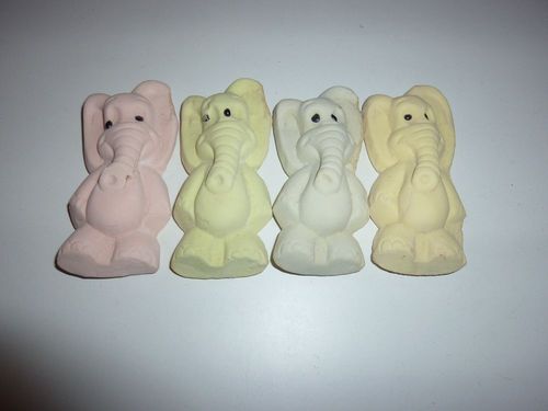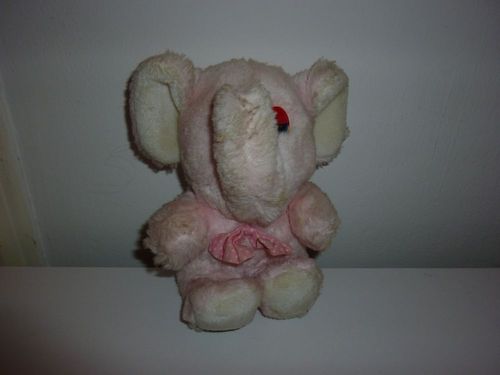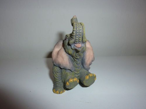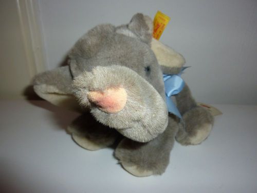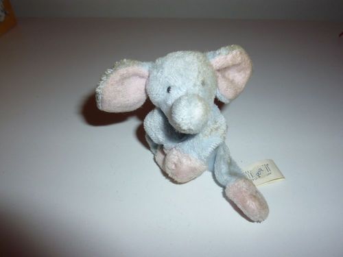 hellblau rosa Ohren und Pfoten, Rüssel: oben, Stoßzähne: nein