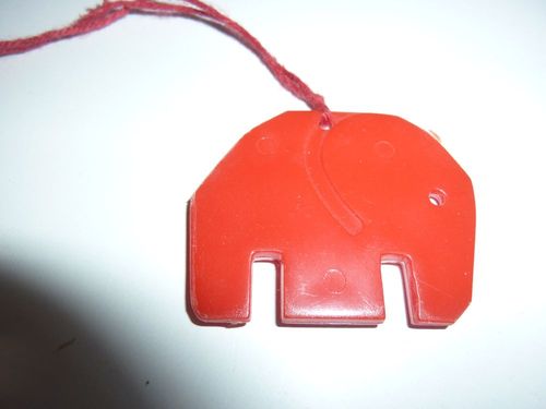 Schlüßelanhänger rot mit weißen Punkten, Rüssel: unten, Stoßzähne: nein