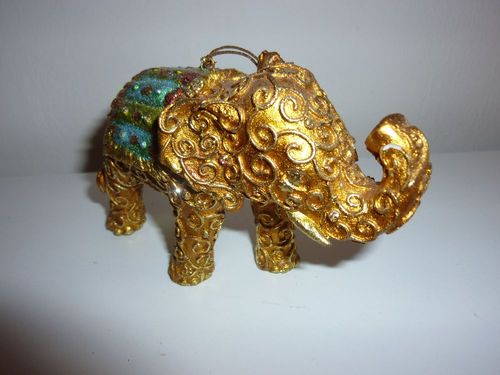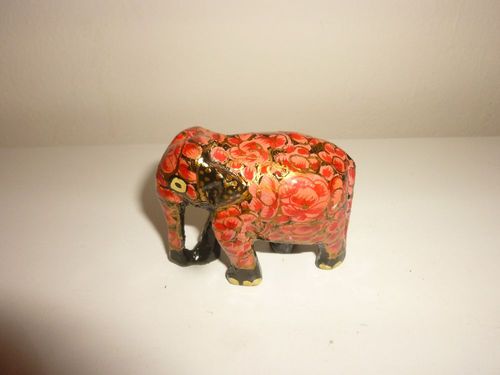 indisch mit roten Blumen golden umrandet, Rüssel: unten, Stoßzähne: nein