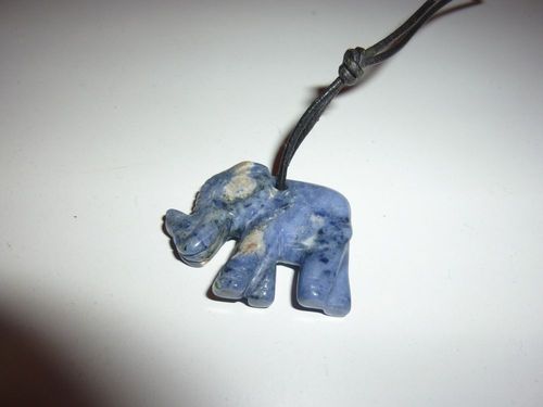 Anhänger blau mit Lederband, Rüssel: oben, Stoßzähne: nein