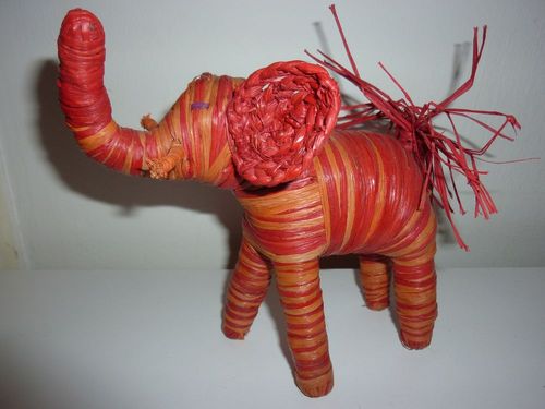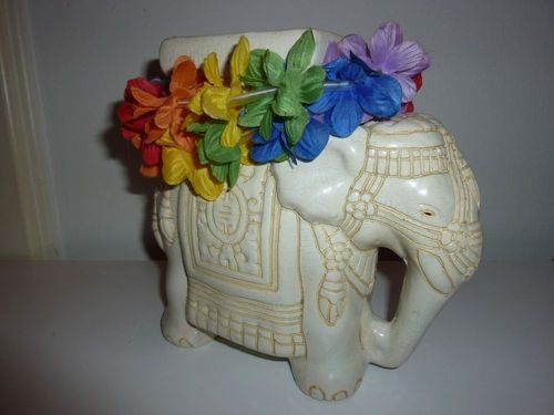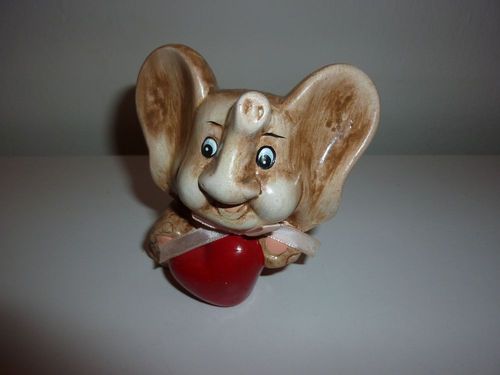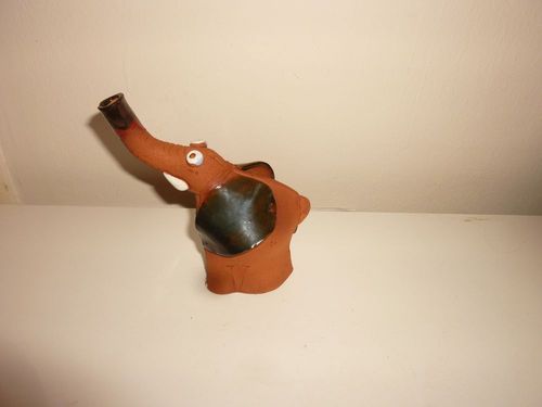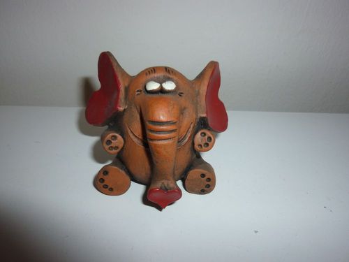 Sparbüchse beige rot Blume im Rüssel, Rüssel: oben, Stoßzähne: nein