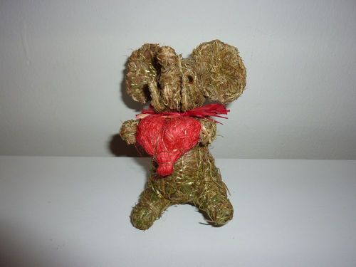 mit rotem Herz, goldenem Draht umwickelt, Rüssel: oben, Stoßzähne: ja