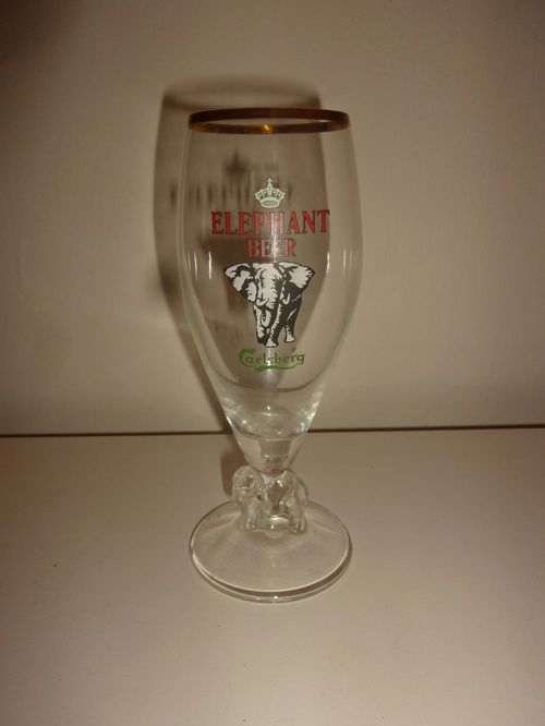 Glas Elephant Beer, Rüssel: unten, Stoßzähne: ja