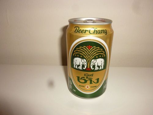 Bierdose Carlsberg Elephant Beer, Rüssel: unten, Stoßzähne: ja