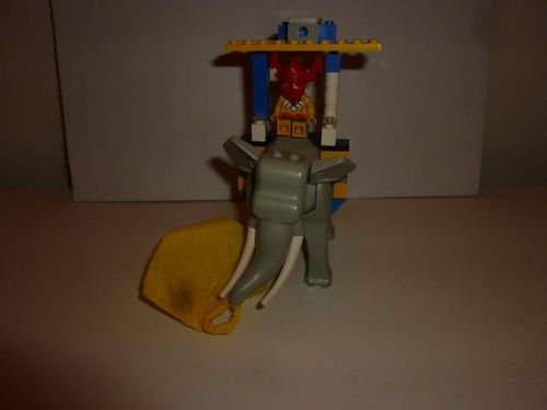 grau bunt Lego mit Aufbau für Mahout, Rüssel: oben, Stoßzähne: ja