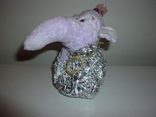 helllila in Alufolie, Rüssel: oben, Stoßzähne: nein