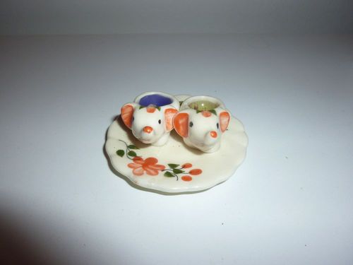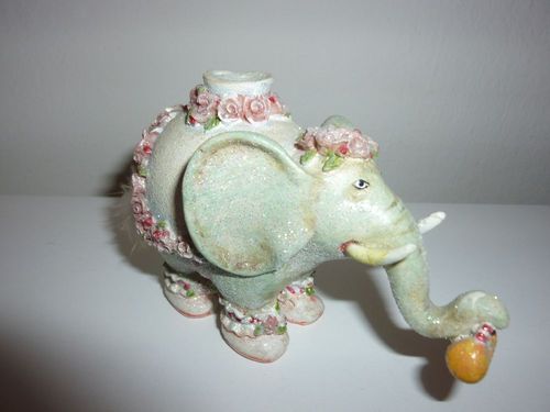 Kerzenhalter bunt auf Teller, Rüssel: oben, Stoßzähne: nein