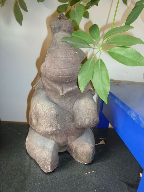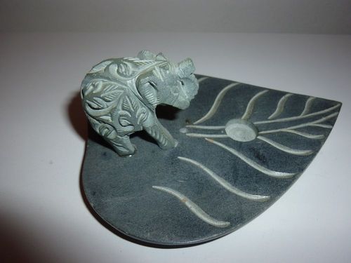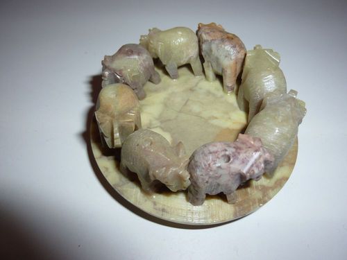 Räucherstäbchenhalter grau grün stehen im Kreis, Rüssel: unten, Stoßzähne: nein